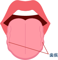 舌が分厚く、周囲に歯形がついている状態は舌のむくみとされ、体に水分が溜まっている可能性があります。